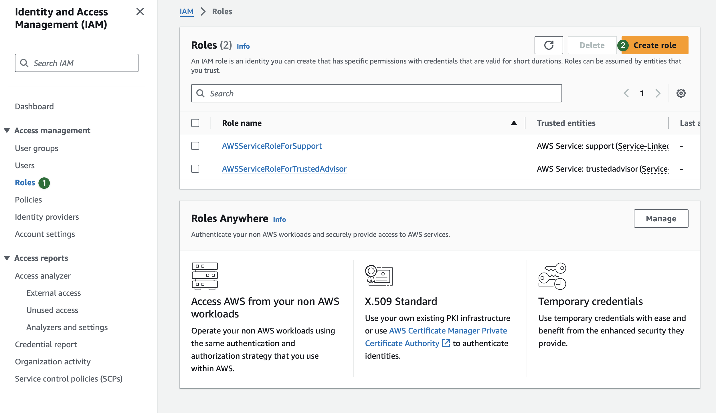 From the sidebar, choose Roles. Then, select the Create Role button:
