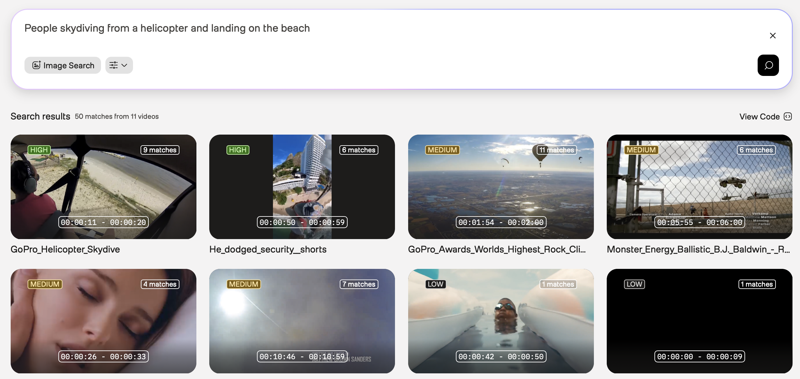 People skydiving from a helicopter and landing on the beach. Now, the search results are narrowed down: