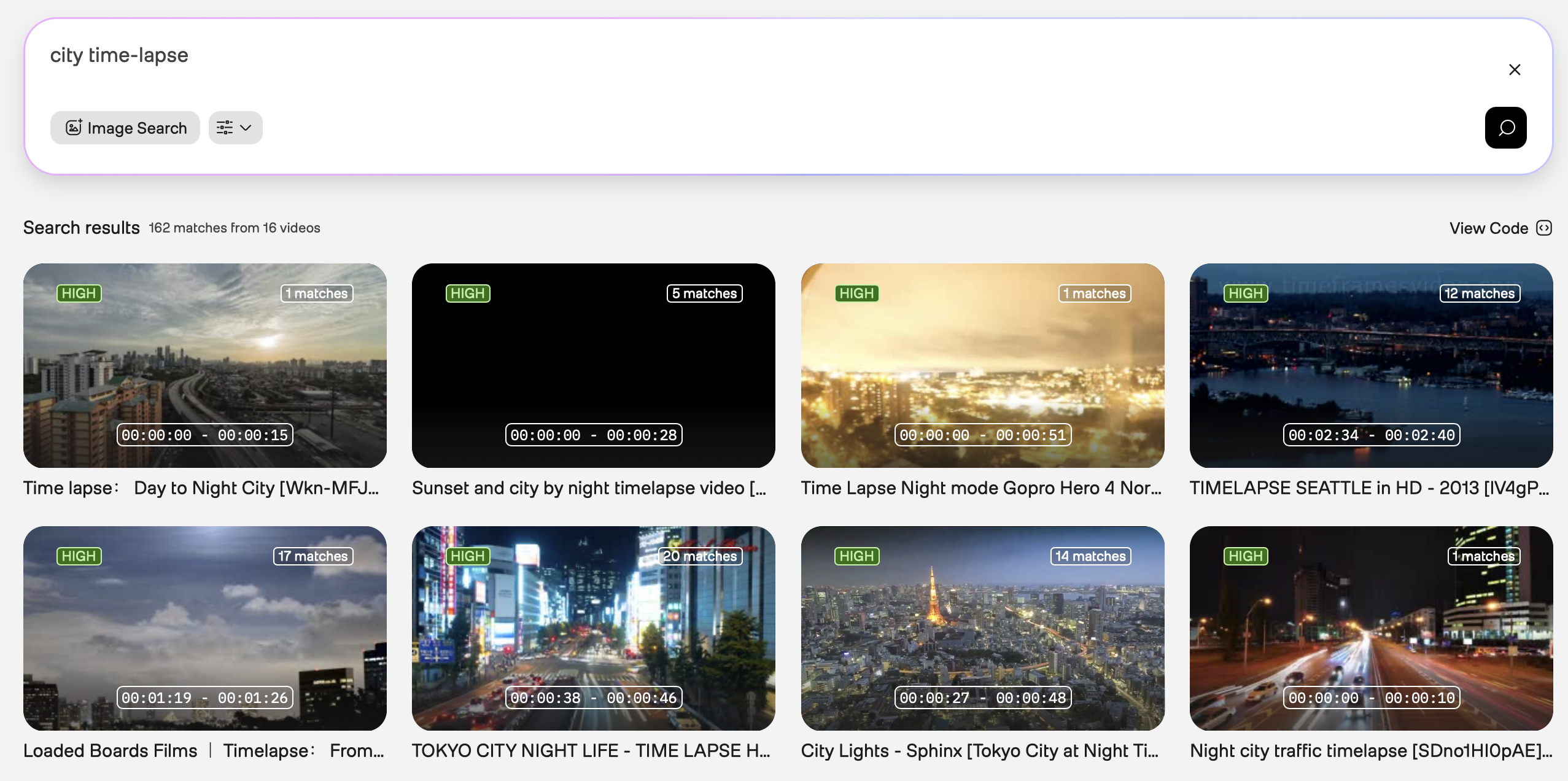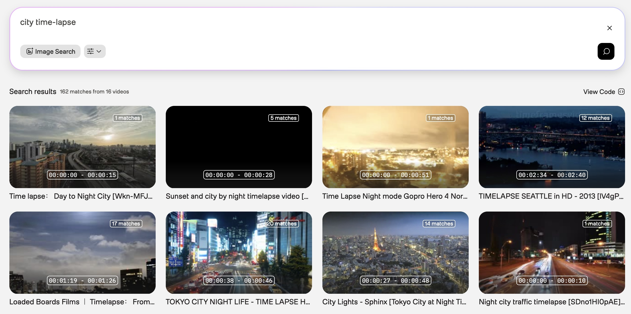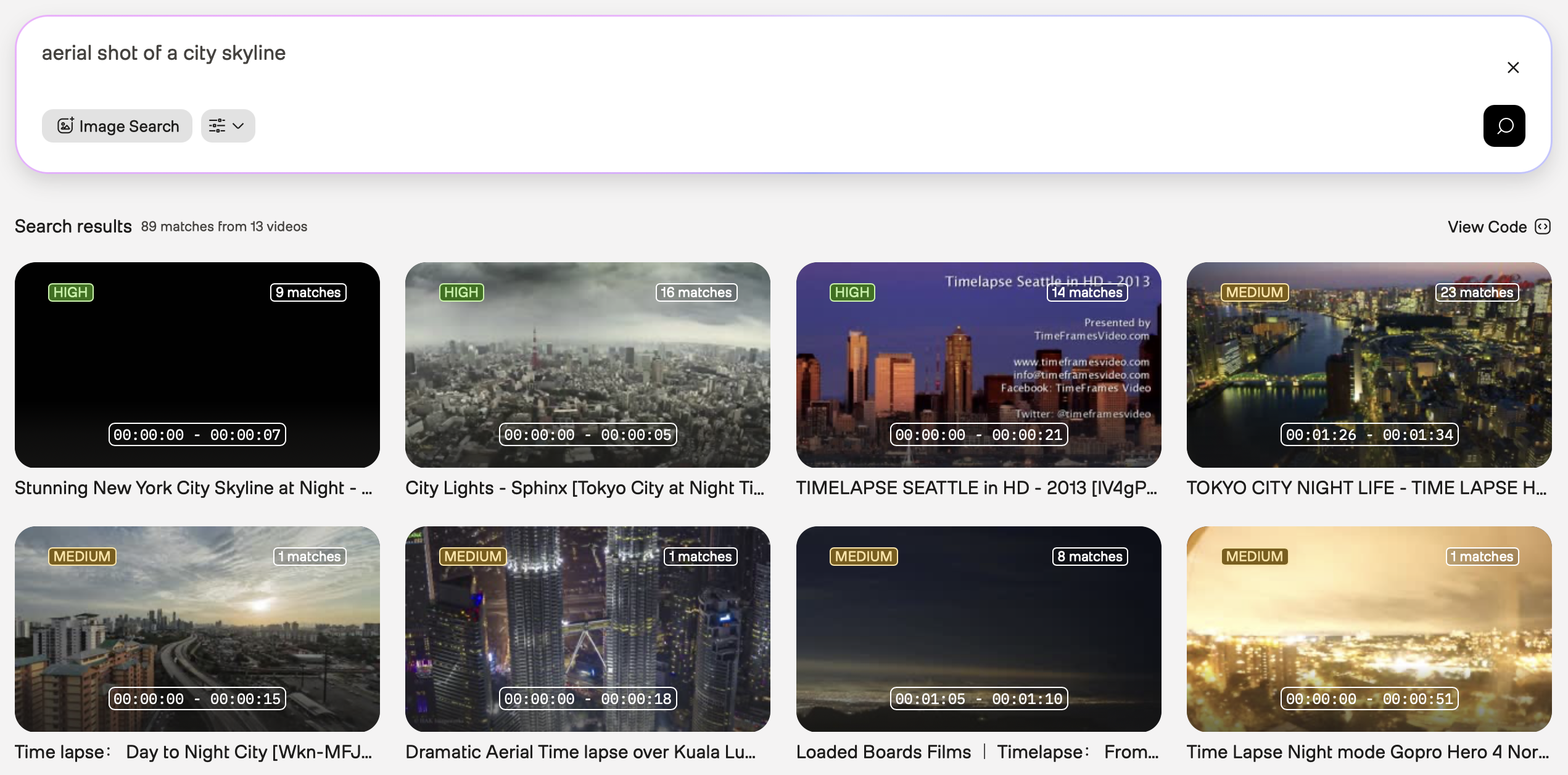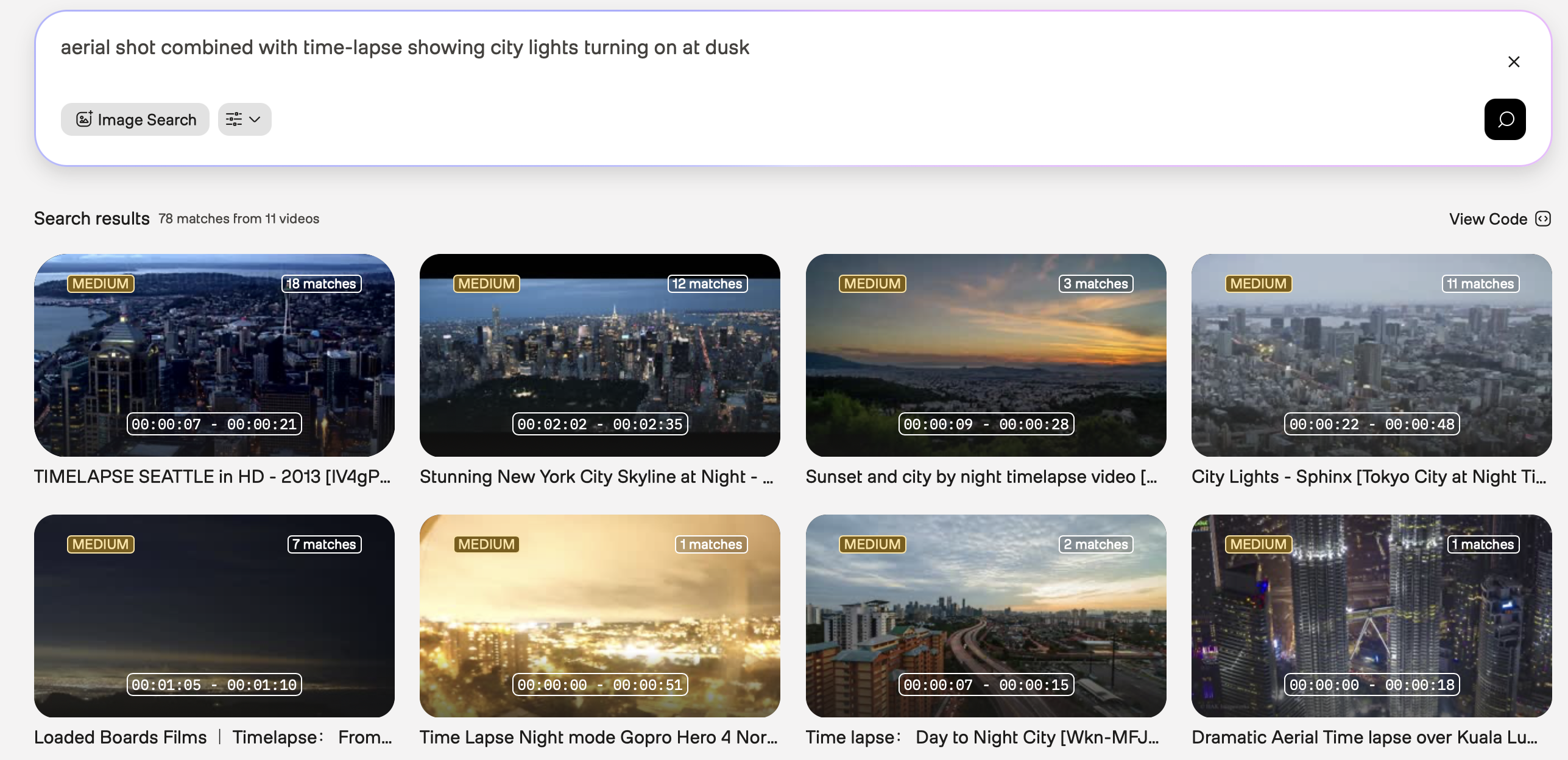Initial query: Use “city time-lapse” as your initial query. The results might include various types of city footage: