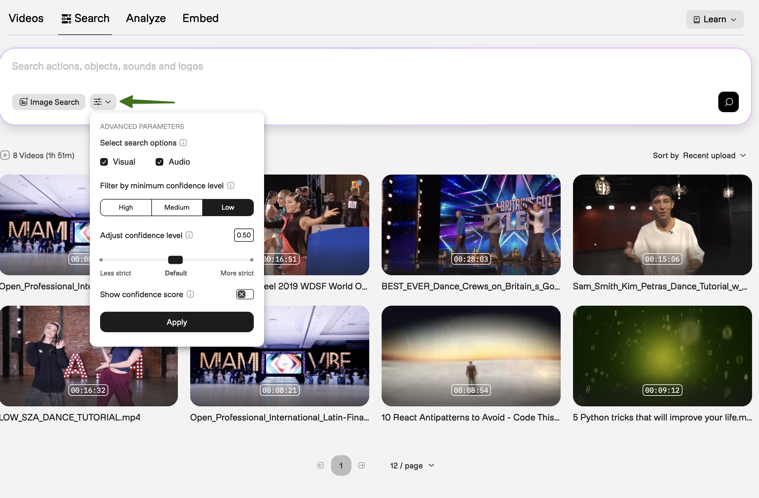 - Filter by minimum confidence level: This drop-down customizes the search results according to your desired trade-off between precision and recall.