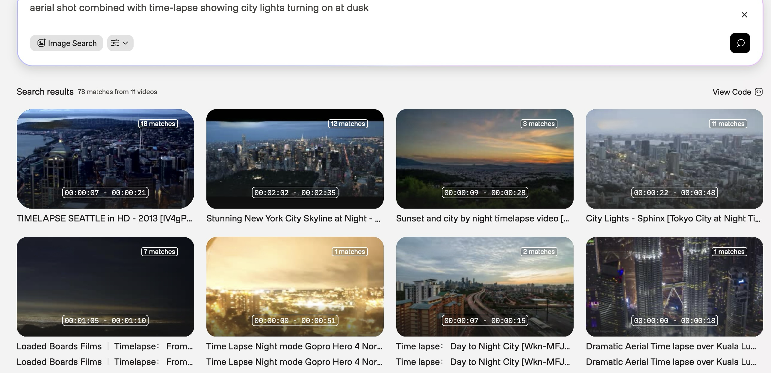 Initial query: Use “city time-lapse” as your initial query. The results might include various types of city footage: